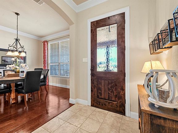 Built in 2013, the home features a spacious 3-car garage and a versatile game room, ideal for family living or entertaining. The primary suite on the main level offers space for a sitting area and a spa-inspired bath, while the open-concept kitchen boasts quality appliances, abundant counter space, and flows seamlessly into the living area with a cozy wood-burning fireplace. A formal dining room provides the perfect setting for gatherings.