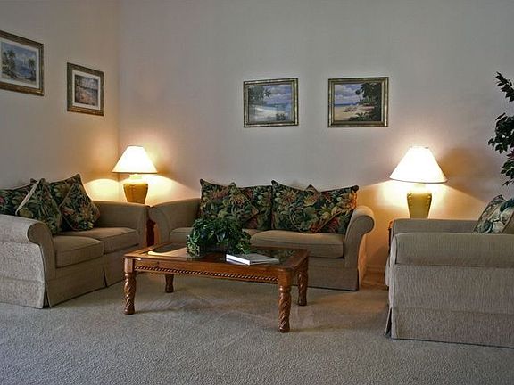'Exceptional Fully Furnished', 4 Bed 3 Bath Pool Home, located on the popular well sought-after Community known as 'Calabay Parc'. Very conveniently located within easy commuting distance to Central Florida's Theme Park Attractions, Shopping, Restaurants and Easily Accessible Road Networks. This 'Truly Beautiful Well Maintained Upgraded' property lends itself easily to a very 'well-proportioned Primary Family Residence', affording approx. 1,900 sq ft of cooled/heated living space or equally as a 'Short-Term Vacation Investment Rental Property', for which it is currently utilized and if required, current owners are willing to convey a booking calendar. The front entrance very spacious foyer leads onto a 'centrally located kitchen area', complete with 'Upgraded Stainless Steel Appliances & Cabinets', Breakfast Bar area, leading off to 'Fully Tiled' dining & lounge areas. There are 'Two Large En-suite Master Bedrooms', both with individual direct access to the 'sparkling private pool & lanai area', imagine, falling out of bed and stepping directly onto the pool decking area to enjoy the 'Beautiful Florida Sun'!! One contains large corner bath, with separate walk in shower. 2 other themed bedrooms convenient to third bathroom, containing half bath/shower. The property is 'fully tiled throughout', complete with beautiful ceiling fans and modern decor and furnishings, upgraded window blinds, 'pool table/games area within the house', comes complete with pool table/foosball, flat screen TV'. "A Must View"!!