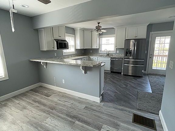Beautiful Cape Cod Bedford Stone home. Completely remodeled. Feel right at home as you step onto the front porch and open the door to see a beautiful open floor plan: With Living room leading into the Dining and Kitchen. The kitchen is equipped with all new upgraded appliances and cabinets. It has new floor coverings throughout. New windows and blinds. There are 2 bedrooms and bath on first floor and 2 bedrooms and a bath on the second floor. Both bedrooms on the second floor have hugh walk in closets. There is an additional walkin closet in one of the bedrooms. It could be his and hers walk-in closets. This house is not just another pretty face it has new electrical wiring, new plumbing, new water, new HVAC and foam insulation throughout. It has a full unfinished basement. There is a new deck on the back that overlooks a fenced yard. There is also a detatched garage at the back. Call Judy 502-319-4408"