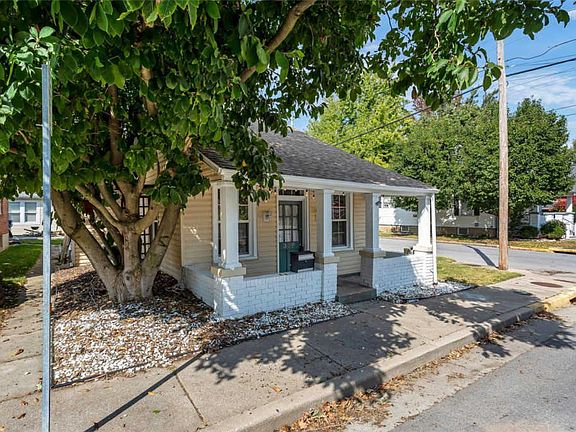 Great investment opportunity! Don't miss out on this historic home with old world charm very close to downtown St. Charles. The charming front porch welcomes you into this two bedroom two bath home on a corner lot. Come see the historic hardwood floors throughout with updated windows. The spacious living and dining rooms adjoin the kitchen that has solid surface counters, a breakfast bar and stainless appliances. The master suite on the first floor includes a renovated bath and built in cabinetry. The second bedroom upstairs gives some added extra space and the updated second full bath on the first floor is great for guests and visitors. There is a large laundry room as well. The cute backyard would be a great spot for grilling out before you head down the road to enjoy downtown St. Charles.