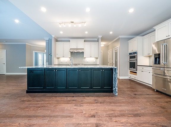 This custom designed stone front Ranch that is complete and offers single level open concept living with 2700 sq. ft. It has 4 bedrooms, A chefs kitchen with HUGE island and stainless appliances which opens to both the trey ceiling dining room and cathedral family room. Large master suite with stand alone soaking tub, custom tile shower and 2 walk in closets. The enormous basement offers a walk out slider and many full size windows and can be easily finished for extra living space. All this on a 2.9 acre private lot. Home also features a farmers porch and 3 car garage. Agent Interest final coat of paving to go on just before closing.