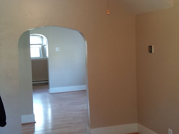This two bedroom half house has living room, dining room, kitchen and bath on first floor, two bedrooms on second floor, and laundry area in basement. Bring your own washer and dryer. Kitchen has gas stove and refrigerator. Floors are laminate on first floor. Wall to wall carpeting on second floor. There is a spot for parking one vehicle behind the building and space in front for a second vehicle. Tenant responsible for all utilities (gas, electric, water, sewer, garbage). No smoking