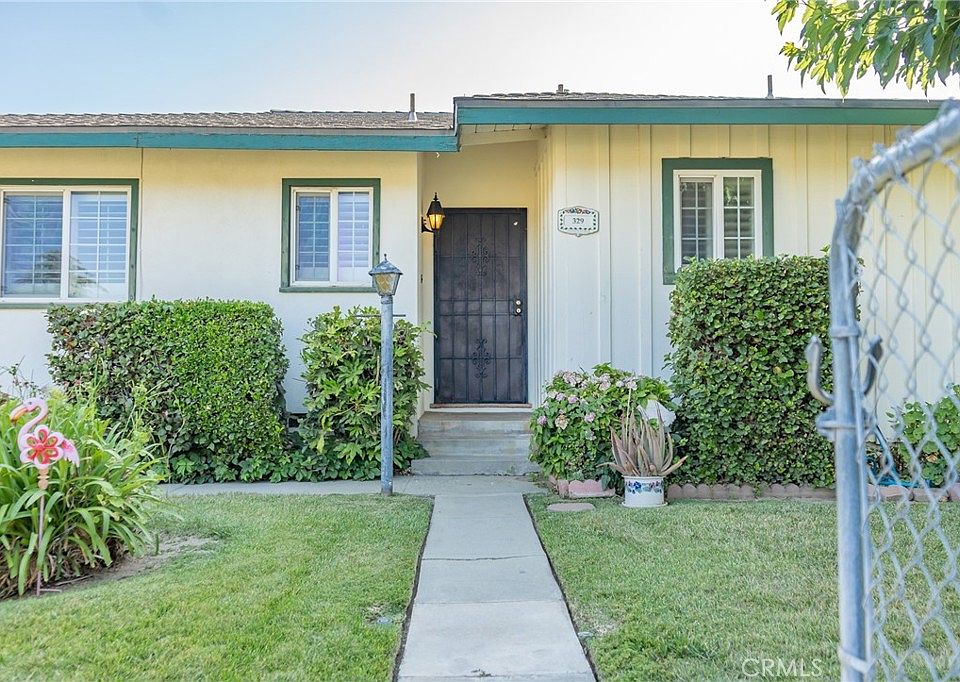 WELCOME TO THE CUTEST VINTAGE COTTAGE, located at 329 Roberge Ave., in Banning. This 3 bedroom 1 1/2 bath with 1405 square feet is the cutest home on the block. This cozy garden cottage is filled with so much vintage charm. When you step through the front gate you are greeted with a beautifully manicured lawn with lots of shrubs and flowers that scream "welcome home"! Inside you will find a cozy living room with a corner brick fireplace for those chilly winter nights. The kitchen is bright and airy with white cabinets, vintage colored tile and faux brick walls, double ovens and a separate cook top. Off the kitchen is a good-sized laundry room with a half bath. You will find original hardwood floors in several areas throughout the home. In the primary room there are 2 closets with a built-in cabinet. Vinyl windows and shudders throughout add to the charm of this home. Head out the sliding door and you will find a covered patio area for those summer cookouts and family gatherings. You will also find apricot, lemon and loquat trees around the property. The backyard is just as perfect as the front yard which also has a large, detached garage. Stop by and fall in love with this adorable home.