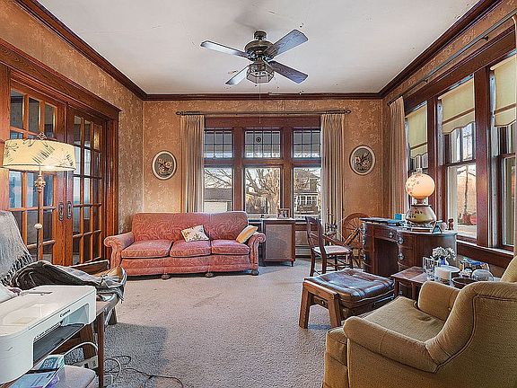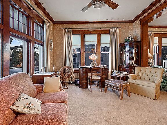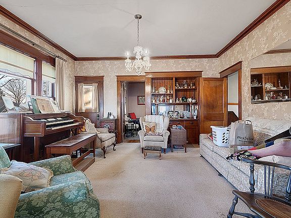 ROLL UP YOUR SLEEVES & make this homestead grand once again! Rich w/history, character & stories, you could make this your own. Enjoy over 2100SF w/5-6 bedrooms, 1st-floor master w/full bath, beautiful woodwork, tall ceilings, crown molding, KT w/old fashion pantry, formal DR w/built-in hutch, zoned heating, grand foyer, parlor w/pocket & windows doors, bedrooms up w/more hardwood floors, RICH & natural woodwork, full bath w/claw tub, closets space GALORE...walkup 3rd floor for more storage. Attached garage w/attic. Full basement w/door to outside. NEEDS WORK. Selling in AS-IS condition.
