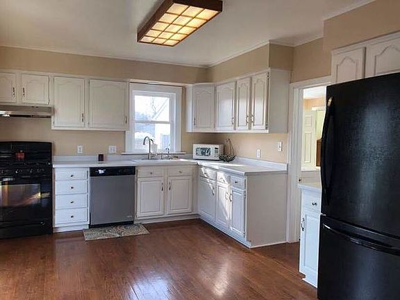 Fabulous 3 bdr home has been freshly updated and ready to call home! Inviting front porch welcomes you into the main floor living area with beautiful hardwood floors, updated eat-in kitchen w/new appliances, spacious living room and separate dining area. For added convenience there is a first floor bedroom, bath and laundry. Enjoy summer nights in this quaint back yard with bar and brick paver patio, or working on hobbies in the newer detached extended 2 car garage. New 50 year standing seam metal roof.