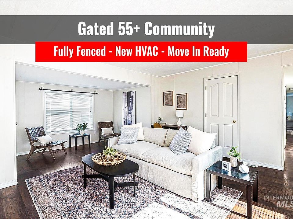 Welcome to 329 Oak Circle in the desirable 55+ gated community of West Meadows Estates in Boise! This recently remodeled mobile home blends comfort, convenience, and community living. Updates include new HVAC, water heater, windows, flooring throughout, a remodeled bathroom with granite, and an updated kitchen. Enjoy the covered front porch, a lockable storage shed, and a low-maintenance vinyl fenced yard, perfect for privacy or a small pet. This well-kept community offers a clubhouse, library, dog park, and RV parking spaces for residents. Located close to shopping, restaurants, and with quick interstate access, this home offers easy living in one of Boise’s most sought-after 55+ neighborhoods. Don’t miss the chance to enjoy peaceful, secure living with friendly neighbors and fantastic amenities! Owner Financing Available. Lot Rent is $824/mo includes sewer/water. Trash is $22/mo.