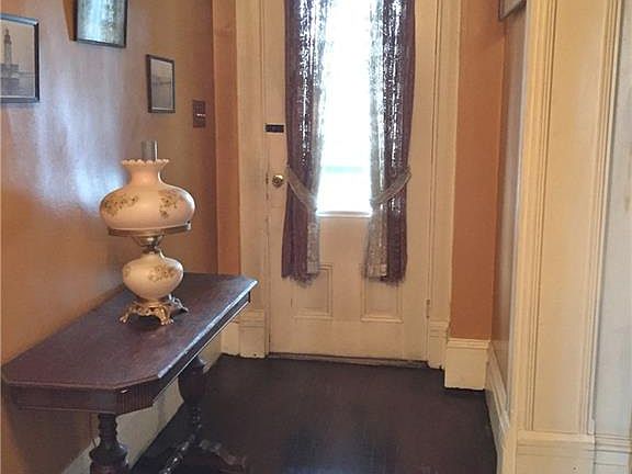 Step back into time in this charming, well-maintained classic Victorian home with loads of architectural design. Built in 1834, all rooms are extremely spacious with lots of windows and 11 foot ceilings. This stately home boasts many original amenities such as door knobs, brass and metal chandeliers, cast iron claw foot tub, oak floors, ornate wood work, and working wood burning fire place in the parlor. And the best part, the Widows Walk! Kitchen has been updated with beautiful maple cabinets and attractive wood plank ceiling. There are 2 HVAC systems and 2 hot water tanks servicing this property, one for each floor. Repairs/updates: hot water tanks 11' & '17, both furnaces repaired '17, added sewage clean out valve and lines to street '15, AC added '05, fireplace serviced '05, outside wood railing replaced '05, electric changed to 200 amp with new meter and breaker panel '02, Roof '02. Park up to 4 cars in metal building. Stack-able washer and dryer convey. 3 parcels. Selling "as is"