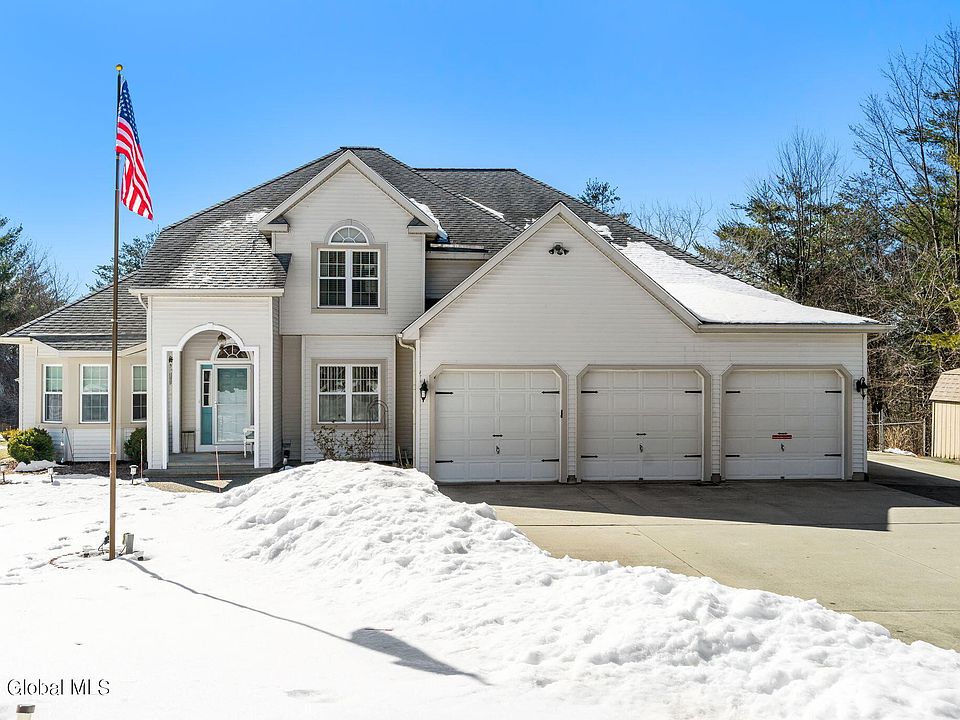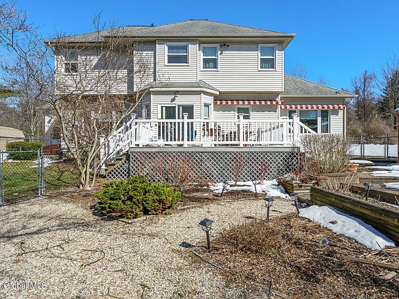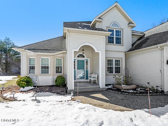 2500+ S.F. contemporary in East Greenbush schools on 6.85 acres. 9' ceilings, heated 3 car garage, koi pond, granite counters, deck and gazebo overlooking private lot. All within a 10 minute commute to Albany. 3D tour attached. Showings start Saturday 3/25.