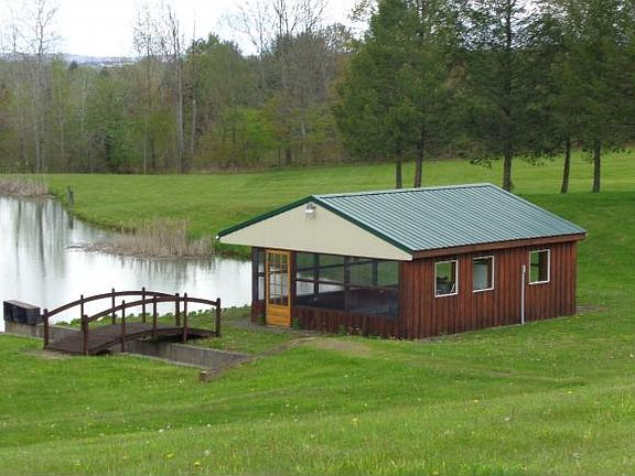VERY SPECIAL COUNTRY PROPERTY, HOUSE DONE OVER FROM NEW FOUNDATION UP. LARGE GARAGE FOR 6 CARS. ALSO HEATED BUILDING 150X50 WITH 5 16'OVERHEAD DOORS, TWO OFFICES, BATH ROOM, STORAGE AREA, WOOD SHOP. LARGE STOCKED POND WITH SCREENED PARTY AND ELECTRIC. 8.3Q ACRES OPEN LAND AND WOODS. OVER 2000 ACRES OF STATE LAND ACROSS THE PAVED ROAD