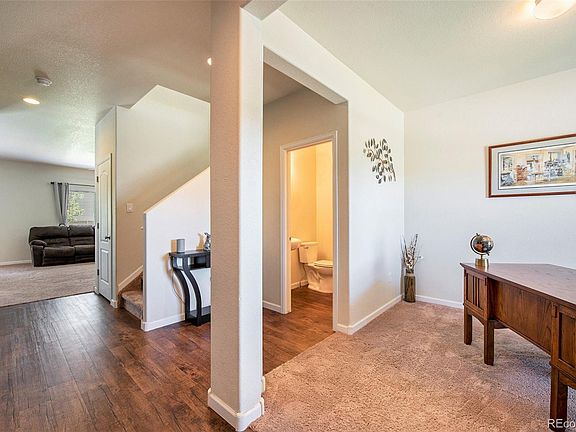 Welcome home to this beautiful 4 bed 3 bath home in a quiet established neighborhood in Lochbuie. This is the ideal location to be close to amenities but still feel away from all the hustle and bustle. Step out of your front door to see gorgeous open space and the rocky mountains. Easy access to 76 and DIA. Once in the home and you have a wonderful flex space for anything your heart desires. Walk through to your large Livingroom space that is a large open concept to your kitchen. The kitchen has Granite countertops with a gas stove and All fixtures have been updated. New motion sensor faucet, New Refrigerator and New Dishwasher. Past the kitchen to the mudroom gives you access to a dog wash. Your garage floor is already epoxied for easy cleanup the front driveway also has an additional 2ft added to it for more parking space. Upstairs you have 4 bedrooms and an additional flex space. Washer and dryer included and on the 2nd floor with the bedrooms! Your Primary suite offers an abundance of space with a 5 piece bath and huge walk in closet! And if that is not enough make your way to your relaxing fully landscaped backyard with concrete stamped pad for though BBQ nights. But wait theirs more! Your new home is equipped with Blink Security, Orbit Beehive Wifi, Wifi Sprinkler System, whole home filtrations system, hot and cold hose bibs around the home, well maintained Furnace and Hotwater Heater, Doggy door access from the living room to outdoors under the stairs, and the roof is only 3 years old! Showings will begin on Thursday June 22nd.