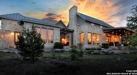 Main Residence: 2,476 sq.ft., 2 bedrooms, 2 bathrooms, 1 partial bath. Casita: 384 sq.ft., 1 bed, 1 bath. Garage Apt.: 464 sq.ft., 1 bed, 1 bath. Total square footage: 3,324. This beautiful single-story home is nestled on 3.81 private acres and seamlessly blends timeless German architecture with Hill Country elegance! The inviting entry welcomes you into this well-appointed home with sophisticated details, quality craftsmanship, dramatic stone walls and detailed ceiling treatments! Walls of windows, glass doors and transoms provide natural lighting to the serene interior. The open flowing floor plan boasts a great room with fireplace, grand dining area and a Chef's kitchen! The cooking enthusiast will appreciate the commercial grade kitchen featuring professional grade appliances, double ovens, side by side refrigerator and freezer, and a Blue Star 4 burner gas range complete with a grill and griddle! The peaceful owner's wing boasts an entry hall with a storage closet and outside access to a private patio with a fireplace! The spa-like bath is complete with a wardrobe room, pedestal sinks, jetted tub, walk-in shower with multiple heads, a bidet and outside access. A secondary bedroom suite has private access. For al fresco living and dining the covered patio offers ample space for leisure and lounging while admiring serene property views! The charming one-bedroom casita features a full bath plus a loft for extra sitting/sleeping space and a patio that boasts serene views. The apartment, which is located above the garage provides additional living quarters for overnight guests and is complete with a full bath. This versatile apartment space could be used as a home office, gym or art studio. All three structures are connected by breezeways which is reminiscent of the 19th century German architecture. Each structure also features a relaxing outdoor lounging area, further enriching the private getaway feeling! The sprawling lawns, towering mature trees and the breathtaking setting cohesively blend to create a peaceful oasis for admiring majestic sunrises and sunsets! The property is also fenced for your pets and horses. Come experience hill country living at its finest!