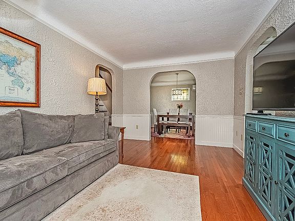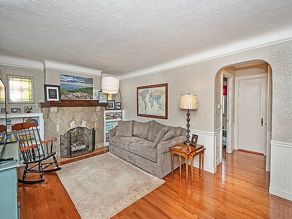 Charming cape cod just 3 blocks away from Howe Elementary. Stone fireplace flanked by built-ins in living room and lovely bay window. Wainscoting and crown molding in living and dining. Hardwood floors throughout the 1st floor. Bedroom/den/office on main level and a 1st floor powder room. Corian countertops, stainless steel appliances, tile backsplash and an eat-in area in kitchen. The 2nd floor boasts two generous sized bedrooms and a full bath. Covered front porch and rear patio. Beautiful yard with shed. Freshly landscaped. Large basement with storage. New boiler.