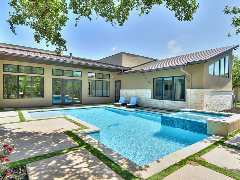 One-of-a-kind contemporary masterpiece! So much thought & detail went into designing this gorgeous open floor plan! Enjoy entertaining in large open spaces both indoors & out with large sliding doors and walls of windows offering a beautiful pool view. Phenomenal heated Keith Zars pool with sun deck and spa with plunge feature offering a full body jet area. Also find an inviting fire pit with gas starter & outdoor kitchen with grill, side burner, built-in trash & sink. Open floor plan with linear gas fireplace, amazing command center/craft closet, exercise room with dance floor (also could be 5th bedroom). Kitchen with European-styled cabinets, large island, 6-burner gas cook top, double ovens & spacious walk-in pantry. Skylight over mudroom & solar tube in laundry provide additional natural light. Master bath with free-standing tub, huge walk-in shower & separate makeup vanity. Adjustable custom closet shelving throughout. Four-car garage, ample attic storage and a circle driveway.