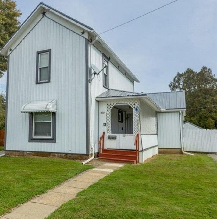 Whether it's your first home or last, this home is perfect for you. From the USDA-eligible location, to all the updates, this darling home offers more than many higher priced homes. Updates include fresh paint throughout, metal roof in 2021, plumbing updated in '20, hot water tank in '19 & siding/gutters were new in '18. The large kitchen has enough room for an island, if additional counter space is desired. The wall of cabinets next to the stove and above the microwave offers additional storage. Working appliances are included, but may be different than what is currently in the home. The dining room has an open staircase to upstairs. The first floor laundry, bath and bedroom make it perfect for retirement, including a washer and dryer. The covered porch is great for sitting outside to watch the summer storms roll in. There are two driveways, one on each side of the house. Listing is subject to sellers closing on their new home, which is under contract. The following items do not stay: curtains in pink bedroom, shop lights in garage, cameras, rhododendron on the far left front of home. Garage is accessed through trap door on back porch.
