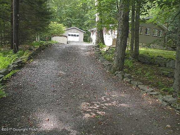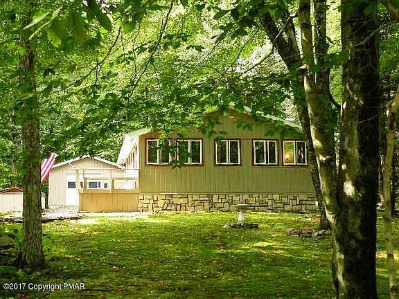 Beautifully situated on 1/2 acre lot in quiet section of LLV, across from PA State Game Lands, this small ranch, with a big heart, offers plenty of living space. You enter through a carpeted, enclosed porch (with Anderson windows), which provides an ideal place for skis/gear in the winter & a peaceful area to sit & dine on a summer evening. An impressive stone fireplace is the focal point of the open living area. A sliding partition & a Murphy bed, off the living room, easily creates a third bedroom for guests. Detached one car garage is perfect for the golf cart or ATV!! This well maintained home has been updated with a dishwasher, high efficiency washer & dryer, new carpet in B/R's, & vinyl siding on the exterior. This lovely, turn key home is priced to sell in this popular community!