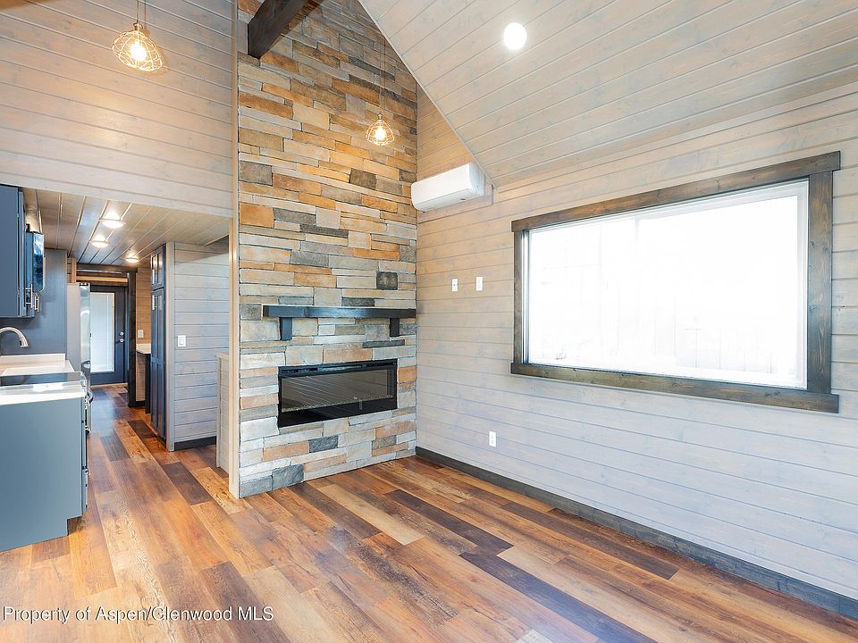 Inside, each room is crafted with quality construction and modern design. The main living space, warmed by an electric fireplace, offers a tranquil setting for relaxation or entertaining friends. It opens beautifully to a covered patio, where you can indulge in evenings around the firepit.