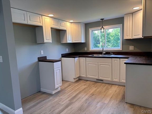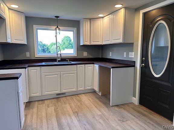 ry farmhouse sits on just over an acre corner lot with a detached 1.5 car garage. 3 bedroom, 2 bath home in a convenient country setting, minutes from town amenities. First floor includes entryway, kitchen, dining and living room, first floor bath with laundry hookup. Second floor features 3 bedrooms and a full bath. Freshly painted and new flooring throughout. New kitchen cabinets and counters. Fully fenced yard. This home is waiting for you, call today!