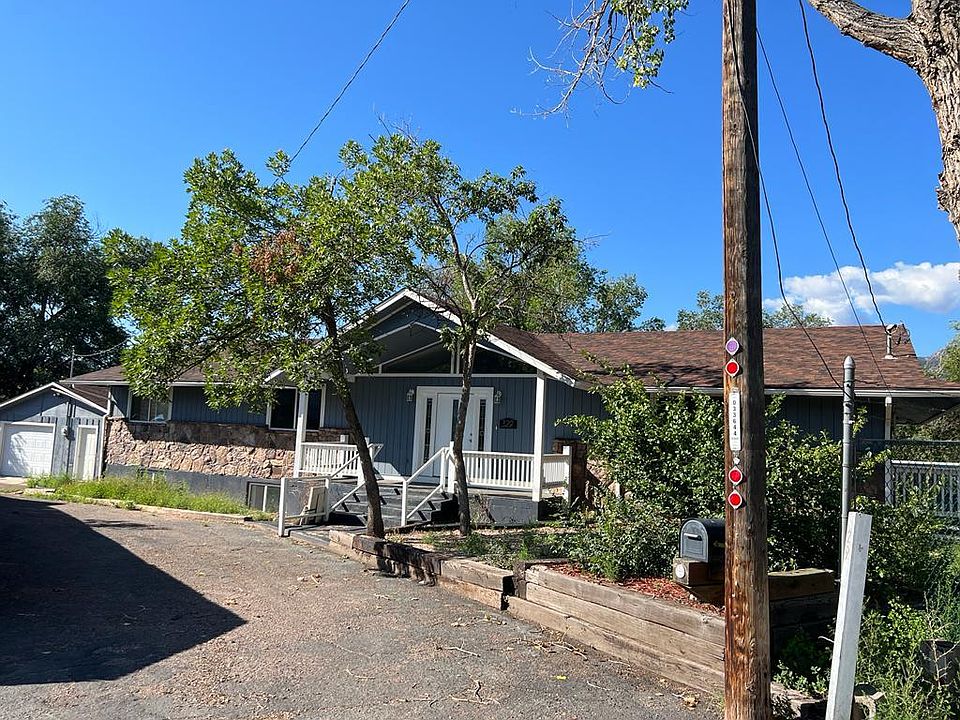 Beautifully renovated ranch home in Old Colorado City. Plenty of room, the 4 car attached garage and 2 detached garages. A welcoming covered porch opens to a spacious vaulted living room with built-ins and a fireplace as well as walking out to the large deck. This home has a sought after open concept main level with LVP floors that flow through most of the main level and right through the dining room that walks out to the wrap around around deck with mountain views. The thoughtfully planned gourmet kitchen features solid granite counters, soft close cabinets & drawers, dual ovens, 5 burner gas stove top, a giant island with loads of storage and not one, but 2 over sized refrigerators; you will not be disappointed. Beautifully renovated 5 piece master bath. An additional main level bedroom, full bath and large laundry room with granite counters and sink complete the main. In the walk-out basement you will find a family room with a fireplace, a game area, an en-suite bedroom w/ a fireplace; ideal for guests, and two more bedrooms. Two A/C and heating systems for zone heating and cooling, all new vinyl windows and four large sliding patio doors, lots of natural light! This home has all new, carpet & LVP flooring, kitchen cabinets, countertops, appliances, paint, and updated baths. Basement level has 2nd master bedroom with fireplace, walk in closet & adjoining gorgeous bathroom. 2 additional bedrooms, spacious family room with fireplace, walkout to patio, access to attached garage located off family room. The lot is ideal for motorhome and toy storage with ridiculous amount of parking. Nothing has been missed on this beautiful main level living ranch home. Required pre-application qualifications: Tenant must have no evictions, 2.5 times rent household income, 650+ credit score. No Marijuana Growing or Production, No Smoking. Tenant is responsible for all utilities.