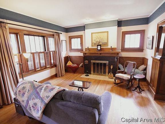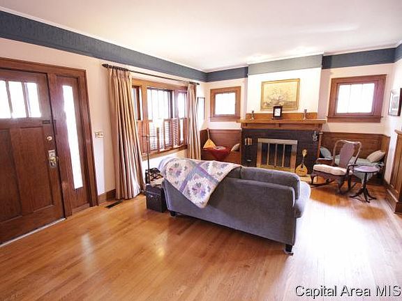 Craftsman built all brick home. Fantastic original custom oak woodwork and oak hardwood floors in excellent condition. Majestic wood burning fireplace in living room with side benches. Tall ceilings and large windows . Remodeled bath with granite vanity and deep pedestal tub. Updated kitchen..Newer Pella wood framed windows in part of the main level. Furnace with UV air purifier. Full basement with 2nd bath down. 2 car extra deep garage.Newer, roof, plumbing, sewer line.