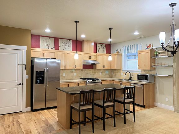 - Appliances: Dishwasher, Built-in Microwave, Garbage Disposal, Stainless Steel Appliance(s), Free-Standing Range, Island, Tile, Gas Appliances