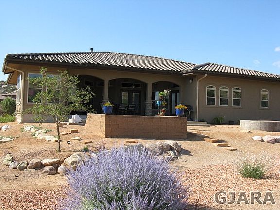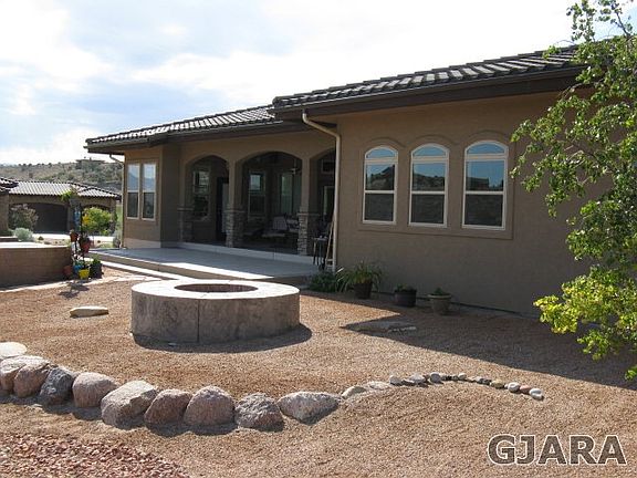 Wonderful indoor/outdoor living on #7 fairway of Redlands Mesa Golf Course. This ranch style home features views and excellent natural light through the numerous windows with transom windows, arches, and doors. Split bedroom floor plan with large living room and separate spacious family room open to kitchen and nook area. Super covered patio 28x12; green house (8x14) fire pit, hot tub, low maintenance exterior, oversized 2-car garage. Very well constructed frame with 2x6 exterior walls, central vac system, security system, furnace humidifier system. Super location!