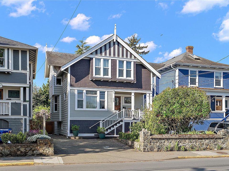 Stunning 5-Bedroom James Bay Character Home! This meticulously maintained character home in the heart of James Bay is a rare find! Featuring rich wood built-ins, gleaming refinished floors, and stunning windows with original stained glass, this home exudes charm. With five spacious bedrooms upstairs, two spa-style bathrooms, and a powder room, there’s room for everyone. The main level offers a grand parlour, office space, sunroom/playroom, and plenty of basement storage. Enjoy distant mountaintop views from the second-storey deck or relax in the fully fenced, south-facing backyard—perfect for kids and pets. Just blocks from Starbucks, Thrifty’s, the Legislature, The Empress, Inner Harbour, and Beacon Hill Park, this home offers an unbeatable location. Walk or bike downtown with ease! A truly magical home—call today for your private viewing!