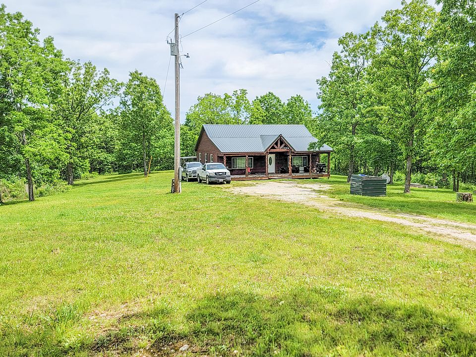 Beautiful home resting on 21 acres! This cabin with cedar and pine accents throughout is one of a kind and absolutely stunning! The cabin features 2 beds, 2 bath and a loft that could easily be converted to a 3rd bedroom. The rough edged cedar makes for perfect detail lining the covered porch. Truly something you have to see in person to behold. The home sits tucked away and is perfect for your own little secluded paradise. The 21 acres is comprised of rolling Ozark Hills and makes for some quaility hunting throughout.