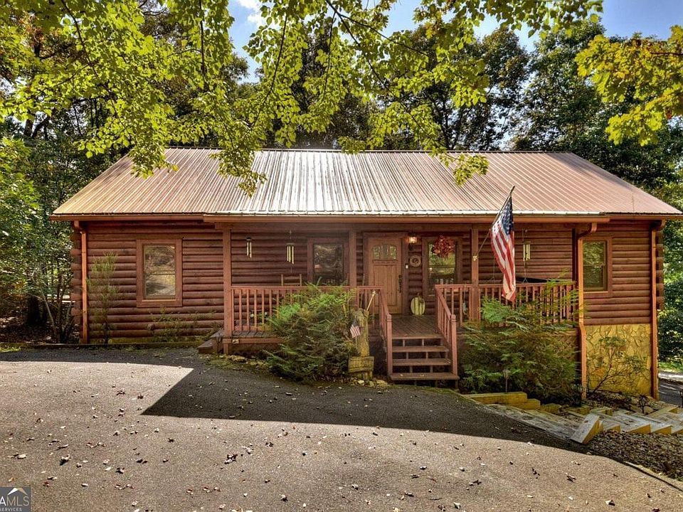 There's MORE than meets the eye with this special true LOG CABIN! Boasting 2380 sq ft of living space; Sleeps 10; custom Wine Cellar, 2 car garage & very well maintained! This 3BR/2BA cabin features a large LOFT, soaring ceilings in great room, stone fireplace w/custom mantel, antler chandelier & a well appointed, fully stocked kitchen with pantry. Primary BR on main floor has vaulted ceiling, 2 walk-in closets, copper sink vanity & walk-in tile shower. Finished basement provides 3rd BR & doubles as a family room. Wine Cellar is perfect for wine enthusiasts, or can be converted to a bunk room. Enjoy the outdoors on the rocking chair front porch, lovely screened porch, open deck & firepit area. So many upgrades in this cabin, see disclosure for complete list. Great setting with easy access, all paved rds, located in popular river resort with vast number of amenities, including 3 pools, river parks, walking trails, fishing pond, fitness, tennis and more! Less than 5 miles from town. Must see, this one will not disappoint.