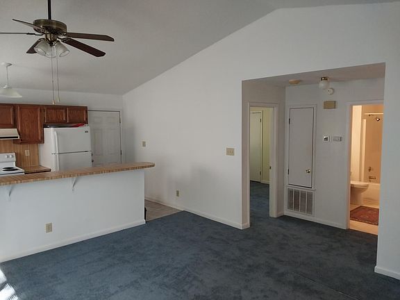 2 bedroom duplex on quite wooded lot. Great room with vaulted ceiling, woodburning fireplace and ceiling fan. Large kitchen, plenty of counter and cabinet space. The bedrooms have 2 large closets . New carpet throughout, freshly painted walls as well. Skylights brighten up the kitchen and bathroom. A large deck overlooks the private backyard. Renter is responsible for electric, trash disposal, and yard maintenance (very minimal). Owner supplies well water. This is a non smoking property. Pets under 20 pounds are negotiable. Pet deposit required.