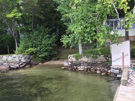 This charming lake house, set on 5+ acres and located on Black Point on beautiful Lake Winnipesaukee, features a detached two car garage, sandy beach, covered u-shaped dock and westerly views. Give us a call at 603-755-1297 if you'd like to see it!