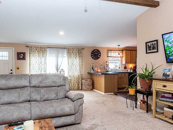 River views from this highly upgraded and maintained home! Spacious great room with vaulted ceiling and wood burning fireplace. Large kitchen with island and eat in dining, featuring lots of counter space and cabinets. Separate master bedroom with double sinks, garden tub, separate shower, and walk in closet. Laundry room with bonus pantry area and washer and dryer included. Front and rear deck with beautiful landscaped front and rear yard. 2 car carport with additional storage. A must see!