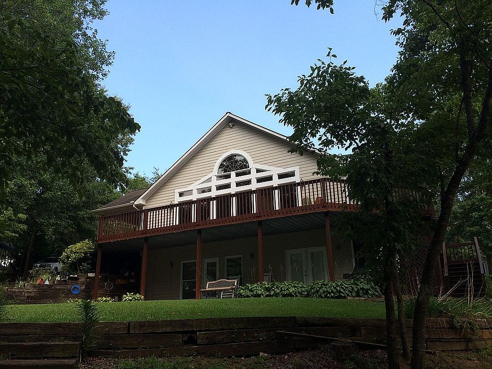 Here is a wonderful lake home that offers 3 bedrooms and 3 bathrooms with the master bedroom and a 2 ND bedroom on the main level. The master bathroom has a large Jacuzzi tub and a large walk in closet. The family room is an open floor plan that has a vaulted ceiling with large windows that offer natural lighting and views of the lake. There is a fireplace with gas burning logs and a dining area. The kitchen is small but open with a large window with views of the lake. The downstairs offers a family room for the kids small kitchen and a large bedroom and a full bathroom. There is a large workshop and garage if additional space is needed. A Large wrap around deck that over looks the lake. It is an easy walk to the water with a seawall, floating dock and minutes from open water. There is plenty of space for the kids to play in the yard. This is a great lot!!!!