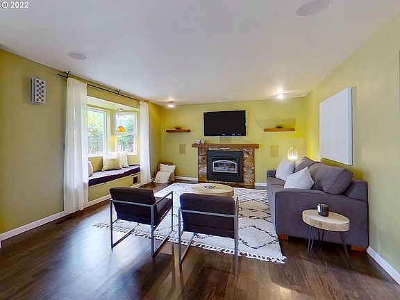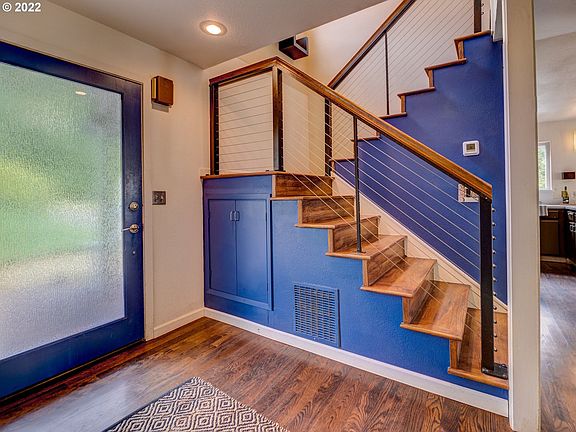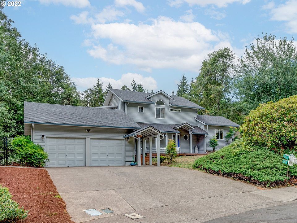Beautiful spacious home in a great South Eugene location on a quiet cul-de-sac. Gas cooking, SS frig, b/i micro, recessed lighting eating bar. Gas fireplace with quartz, bay window seat. Hardwood floors throughout. Primary bedroom with full bath, double closets. Spacious main level bedroom or could be office. Set up for home theater. Instant hot water. Covered decks. Catery. Natural backyard setting with year round creek & backs to wooded common area to enjoy wildlife. Nature trail adjacent.