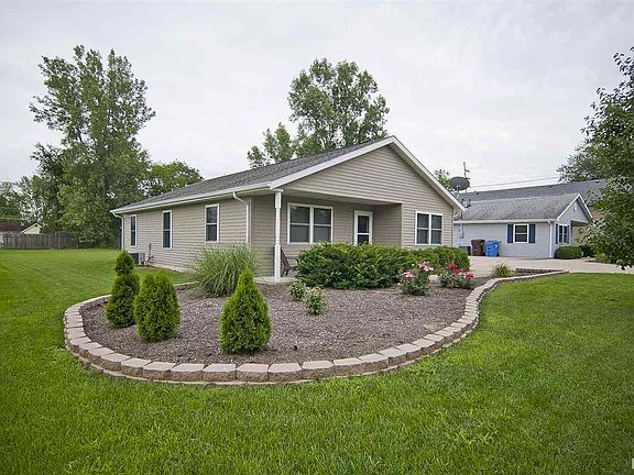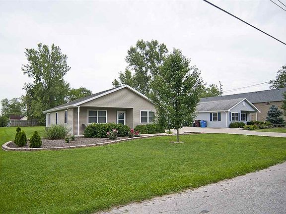 Charming home with 3 bedrooms and 1164 sq ft. You will be pleased from the moment you enter the driveway and walk up to the fantastic covered porch. When you enter this open concept home you will notice the beautiful paint colors throughout. The living room offers a great space for your family to gather and opens into the dining room. From the dining room you can make your way into the kitchen with abundant cabinets and all appliances to stay! Travel down the hall from the living room and you will notice bedrooms 1, 2 and 3 along with a full bath. Outside the home is a huge back yard allowing for a great space for kids or pets to run and play. There is also mature landscaping surrounding the home and a storage shed for outdoor equipment. Newer roof, well, windows and furnace. Flooring and paint is nice throughout home making this place move in ready! Home is within walking distance of Smith Green Community Schools and downtown Churubusco.