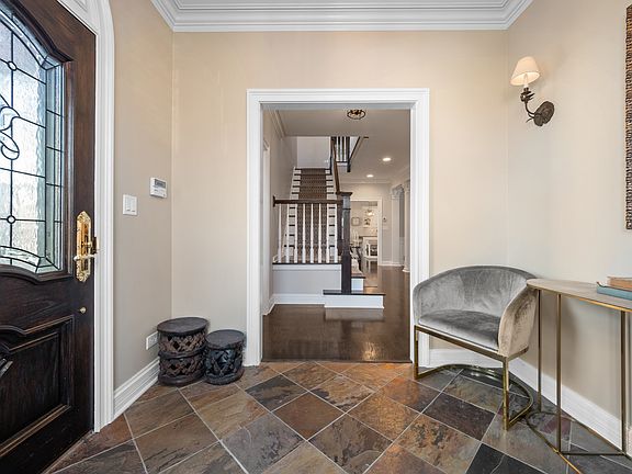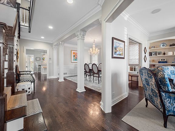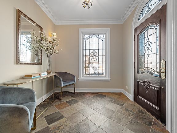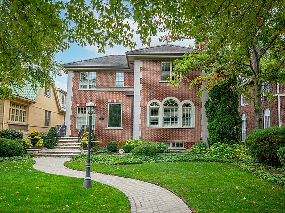 Nestled on an idyllic tree-lined street in the Country Club area of Park Ridge, this custom-built home offers the perfect combination of quality construction and classic design. With unparalleled craftmanship, this house sits on a 50x220 lot a few doors down from the Country Club and just blocks from Field Elementary School, Prospect Park, and everything Uptown Park Ridge has to offer. The floorplan has a harmonious balance of separated living spaces and seamless flow from room to room. On the main level there is an elegant foyer, formal living room with fireplace, formal dining room, office with built-in cabinetry, family room with an additional fireplace, and a beautifully, light-filled kitchen with an eating area. The family room features a hand-built masonry fireplace, custom built-in entertainment center and coffered ceiling that grounds this area in a sense of coziness and warmth. Flow from the kitchen to the family room extends naturally to an enclosed patio that leads to the backyard. There is also a mudroom off the side entrance that includes a sink and an additional refrigerator. Upstairs the private primary suite includes a stunning fireplace, large walk-in closet and luxurious bath with double vanity space, separate tub, and walk in shower. The rest of this floor is comprised of three spacious bedrooms, another full bath, and the second-floor laundry room. The finished lower level serves as yet another gathering space with a large rec room that has a fireplace, second kitchen, wine cellar, guest bedroom, full bathroom, second laundry room with a pet sink, tons of closet space and multiple storage spaces. This space is perfectly situated for guests or in-laws. The beautifully landscaped backyard completes the home with a brick paver patio, three car masonry garage, and parking pad with a basketball net off the one-way alley. This home has it all with its attention to detail and desirable location!