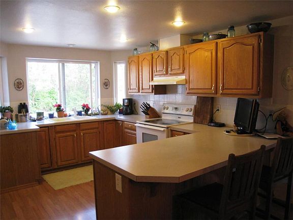 Meticulous home with massive shop! Unlimited potential with the 40x80 heated, finished, well lit work area complete w/office and full bath. The spacious rambler features a rec room w/a built-in wet bar, large kitchen, dining room w/coffered ceilings and three bedrooms. The master suite has sliding doors leading to the covered spa area located on 700 sft of deck. Step off the deck into a beautifully landscaped yard complete with water feature and tile patio.