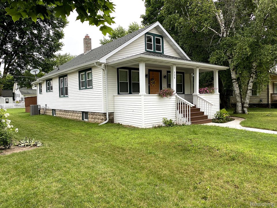 On a quiet street in town, take a look at this super cute starter home with three bedrooms and an oversized lot. Inside the home, the modern kitchen includes all appliances, some are new, a nice pantry, and a closet. The formal dining room reveals hardwood floors and nice windows. In the living room, you will find an electric fireplace and more hardwood floors. There are two bedrooms located on the main floor with updated bathroom. Heading upstairs, one will find a very large bedroom, or if you have other wishes, it could be used as a great room. The home offers a newer central air system, furnace, and hot water heater. The full basement is home to a washer and dryer that will stay, and lots of room for a recreation room or more storage space. Stepping outside, you will find the home wrapped in vinyl with newer windows, a nice deck off of the kitchen door, and an attached two-car garage with electric door openers. There is a nice alley to access the garage. The front of the home offers a great covered porch for those quiet evenings when you want to sit outside and enjoy the beautiful weather. This home is in very good condition and is truly so cute. It is time to make this one yours today!