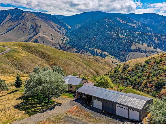 Take a look at this 20.12 acre mini-ranchette with soaring Salmon River Canyon views located below the hard snow line. The 1999 Fleetwood manufactured home is 1716 sq ft and boasts 3 spacious bedrooms, 2 baths, vaulted ceilings, a living and large family room, split bedroom design, two covered decks and automatic sprinklers. Need parking or room for toy storage? Enjoy a newly built 1440 sq ft shop w/ roll-up doors and a 24 x 22 carport. The 26 x 36 pole barn and fenced pasture will accommodate all your livestock. Resident elk, deer, turkey and upland birds frequent property. There is a deer fenced garden area, apple, cherry, pear and plum trees on the property. New metal roof in 2021 and newly installed gutters throughout. This is located in Whitewater Wilderness Ranch Subdivision where land owners have exclusive access through a locked gate to access USFS ground for hunting, hiking, mushroom picking, horseback riding and more! BTVAI