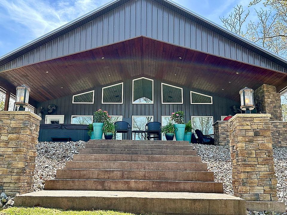 Charming 3 Bedroom Lake Home with a Wow Factor! Sunset Ridge is located on 3 acres and has 200 feet of lake frontage. Two patios are at the lake with a double boat dock, 2 boat lifts, and a swim deck. Three bedrooms and 2 full bathrooms are downstairs and a large bonus is upstairs. The indoor fireplace has propane gas along with a gas stove in the kitchen. Large patio with wood-burning fireplace. A hot tub on the patio is included with the house. 2 car garage. A large parking area and a gravel pad are ready for a shop if desired.