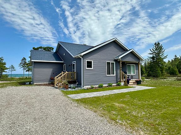 Experience upscale lakeside living in the sought-after community of Point Nipigon! This newly constructed 3-bedroom, 3-bath home offers 116 feet of prime Lake Huron frontage with breathtaking views of the Straits of Mackinac. Enjoy a bright, open-concept interior designed for modern comfort and effortless entertaining. Luxury vinyl flooring runs throughout the home, combining style with durability. Two bedrooms feature private en suite baths, perfect for hosting family or guests. The kitchen is a showstopper with quartz countertops, a tile backsplash, stainless steel appliances, and a 5-foot center island ideal for gathering. A cozy gas fireplace adds warmth to the spacious living area, while sliding doors lead to both a screened-in porch and open lakeside porch— perfect for soaking in the panoramic water views and fresh air. Don't miss this rare opportunity to own a piece of paradise on the shores of Lake Huron! Nestled along the shores of Lake Huron between Cheboygan and Mackinaw City, the exclusive community of Point Nipigon offers an unmatched blend of natural beauty and resort-style amenities. Residents enjoy access to a private sandy beach, tennis courts, a children's playground, scenic walking trails, and a beautifully appointed members' lodge, perfect for hosting family events and community gatherings. At The Point you will find a beach house featuring a designated swimming area, grills, picnic tables, and a volleyball court, creating the perfect setting for summer fun. Just across the road, the North Central State Trail offers miles of hiking, biking, and snowmobiling adventures through the heart of Northern Michigan. Whether you're looking to relax by the water, explore the trails, or enjoy time with friends and family, Point Nipigon has something for everyone all in a peaceful, private setting.