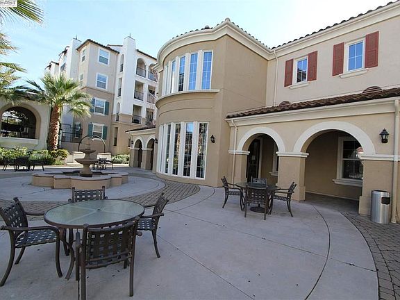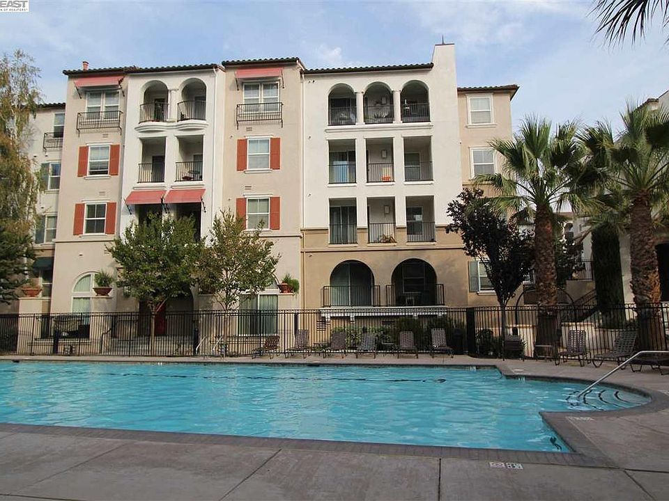 End unit Arona model, luxury condo in the Terraces at Dublin Ranch. World class amenities include secured entry, Clubhouse with kitchen & fireplace, community pool, state of the art Fitness Center, Theatre & Conference room, elevators, 2nd. floor with balcony overlooking the swimming pool. Elegant living area of approximately 1,246 square feet. three bedrooms two bathrooms with open floor plan. Bright & airy with plenty of natural light. Upgrades include dining room chandelier, ceiling fans with lights and remotes, screen door to balcony, surround sound LR speakers, extra shelving added to laundry, bedrooms and coat closet, switch operated gas fireplace with mantel, built-in kitchen radio, LED lights, all new plumbing hoses, decorative tiling in master The only 3 bedroom model in the Terraces. Premium location overlooking the swimming pool. All stainless appliances and slab granite counters in kitchen. Corner unit with plenty of natural light.
