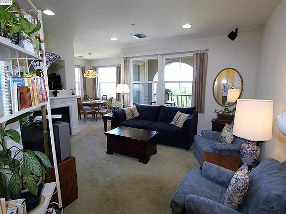 Great floor plan for this San Sebastian model, 4th floor condo with elevator access (No unit above!) located at The Terraces at Dublin Ranch (gated community). Two bedrooms, two bathrooms, 1124 sq. ft. Views from all windows including a kitchen window (rare in a condo). Unrestricted view of Mt. Diablo and across from Bray Commons Park with its playgrounds, picnic areas, volleyball and basketball courts, walkways & trails. Kitchen features granite counters with all appliances including fridge, gas range, microwave, and dishwasher. Living room has gas fireplace with electronic ignition and surround sound speakers. Dining room leads to balcony with hidden sliding screen door. Both bedrooms have walk-in closets and ceiling fans and are separated from each other by the living room. The Master bath has dual sinks and shower; Second bath has tub/shower combo. Laundry closet complete with washer and dryer. Central heat & A/C. This resort style community features sparkling 20-meter pool, fitness center, clubhouse, theater, conference room, spa, and fountains. Underground gated parking garage with reserved parking for two cars (tandem) and additional guest parking. Close to top rated schools, BART, outlet mall and numerous shops and restaurants. Professionally managed by Craig Property Management; minimum one year lease or longer possible. No Pets and No Smoking. Must sign Covid-19 disclosure and wear a mask. Gloves, shoe covers, and hand sanitizer will be provided, no more than 2 people at one time to view this property. Call for more information or appointment to view, we must give current tenants 24 hours' notice of appointments. Please No calls before 9:00 a.m. or after 7:00 p.m. One year lease or longer possible. Owner pays HOA. Tenants to pay all utilities (except garbage).