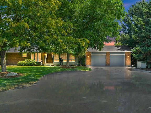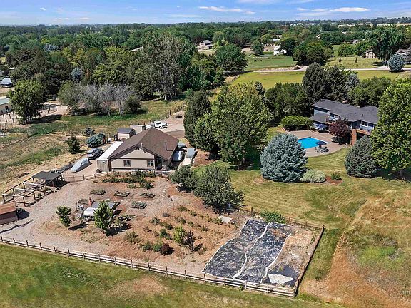 Welcome to your own private Idaho 5 acre oasis located on coveted Holl Dr in Eagle! Enjoy the fully remodeled cooks kitchen with a professional gas stove, pot filler, large walk-in pantry and plenty of space for baking or prepping! The vaulted ceilings and windows galore bring in all the natural light throughout. Enjoy Mountain views from the decks off the primary bedroom, Kitchen & backyard! Refresh yourself in the pool or enjoy the shade of the covered patio and arbore outside dining area! Two bedrooms on the main level and 3 bedrooms & family room in the daylight walk-out basement! Complete with 2 large storage rooms a fireplace & bathroom! The shop is a dream! It includes a full HVAC system, wood stove, windows, a loft along with 220. Private drive to the shop with plenty of room to park all your toys along with an RV hook-up! Storage sheds & shipping container. Garden to your hearts delight, enjoy all the berries and fruit trees! Bring your chickens and your animals! This property has water rights!