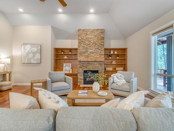 Located on Bend's sought-after westside, this charming single-level home sits in the gated community of Awbrey Glen—offering tennis courts, walking trails, a playground, and optional membership to the golf course, pool, and fitness center. Thoughtfully updated, the home features newer hardwood floors and a spacious great room anchored by a remodeled gas fireplace. The bright kitchen showcases white cabinetry and granite countertops, flowing into a dining area with access to an expansive deck—perfect for entertaining. The third bedroom includes a built-in desk, ideal for a home office. Both bathrooms have been beautifully remodeled, and a brand new powder room adds convenience. The primary suite offers deck access and a spa-like bath with jetted tub, walk-in shower, dual vanities, and a walk-in closet. A three-car garage provides ample space for vehicles, storage, or hobbies.