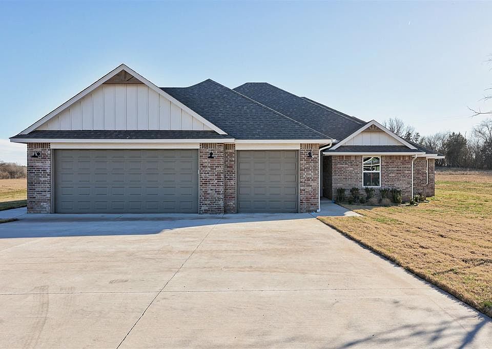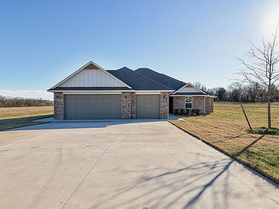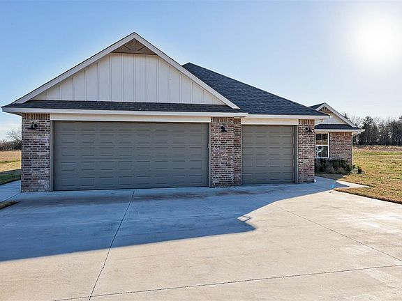 Welcome to your dream home in the Hidden Creek subdivision in Noble. Offering 4 spacious bedrooms, 3 full bathrooms, and 2005 sq. ft. of thoughtfully designed living space, this home perfectly blends style and comfort for everyone to enjoy. Open kitchen, living, dining room area. The kitchen features sleek quartz countertops, a designer white tile backsplash, stainless steel appliances, designated coffee bar plus a large walk-in pantry. Your private primary suite offers the perfect escape, complete with dual vanities, a beautifully tiled walk-in shower with a built-in bench, and storage closet. The walk-in closet connects to the laundry room for added convenience. Step outside to a covered back patio overlooking your expansive 1.21 acre lot. Don’t miss your chance to make this stunning Noble property your forever home!