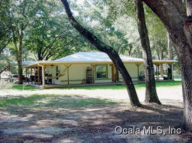LOW MAINTENANCE MINI FARM - OWNER FINANCING! Oak shaded property is fenced w/ pole barn, storage sheds & pens. House is solid poured concrete block w/ 864 sqft. of living area & over 2,000 sqft. under metal roof including full wrap-around porch. 3BR, 1BA w/well planned kitchen. Porcelain & ceramic tile floors. 3 stall carport. Possible owner financing. $125,000 #423556