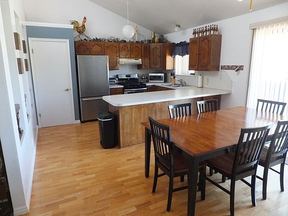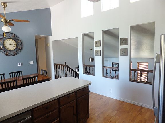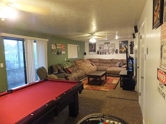 Wonderful front to back split gives the home vaulted ceilings through the entry, front room, and kitchen. Home updated with stained cabinets, paint, hardwood floors, and newer carpet/vinyl. The home is heated by heated floors controlled by efficient programmable thermostats. A swamp cooler and ceiling fans throughout keep the home cool in the summer. Large family room in the basement has room for large couch, pool table; great for entertaining! There is a mudroom/laundry room and bathroom just inside the garage door which is very useful. 275 sq-ft crawl space under front room is accessed by full size door. Spacious master bedroom with walk-in closet. Bathroom has skylight and kitchen has windows high on the wall, giving the home lots of natural light. Well maintained yard with fire pit, shed, and field behind home that will never be built on! Contact Jake with any inquiries. Buyers' realtors are welcome, but do not contact me to list this home!