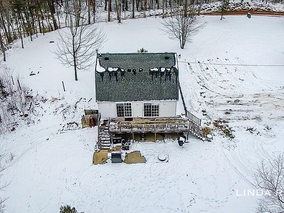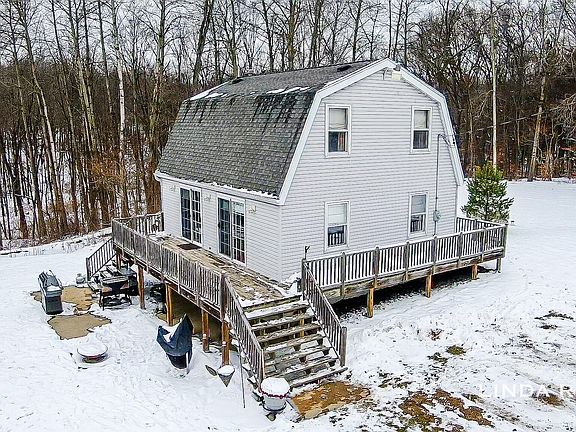 Country lovers enjoy this 2 story walkout with bath and a half on 3 beautiful acres. Lots of peace and quiet. Wrap around deck covers most of the house. Beautiful wooded setting. Large pole barn also used as garage 20X23 feet. New carpeting being installed and freshly painted.