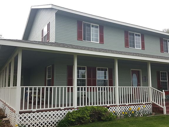 Beautiful 2 story home with wrap around porch, total of 2.76 acres.. Home sets off the road private, fenced, Irrigated HIG, 4 bedrooms 2.1 baths 2 dining areas, lg kitchen with Dwells cabinets ,laundry rm. 2 car garage,GP building insulated 1440 sqft.office fruit trees T.U.G.S. yard, can also purchase adjoining 2 acre lot for total of $459000.