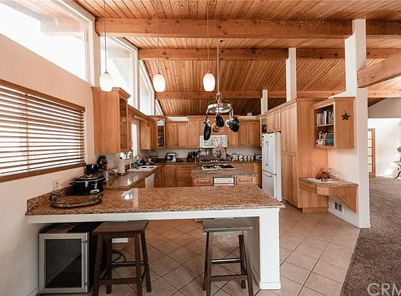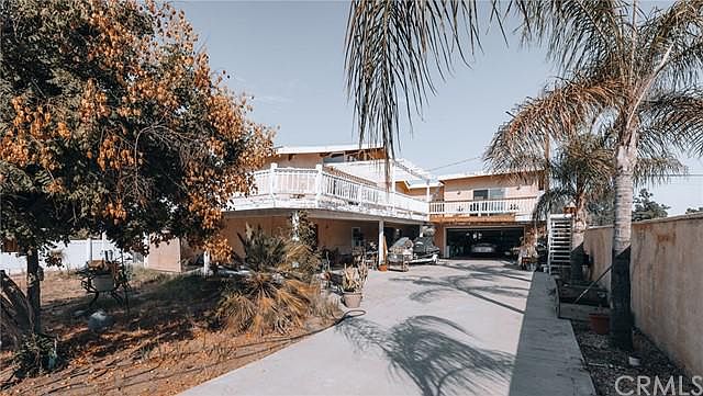 Unique separated use custom 2005 built 1350 square foot home on a 13939 lot located in Lake Elsinore. Approaching the home is a long driveway, an attached converted 2 car garage and abundance of open space. This home features a main living space on the second level and converted garage below, a studio apartment, a 2 bed 1 bath apartment, a workshop and solar! Coming through the front door you will find an entry area where you can either enter into the converted garage or head upstairs to the main living space. Coming up the stairs you are greeted by a light and bright open and airy floorplan with gorgeous high wood beamed ceilings.This space boasts an abundance of natural light flowing throughout the main level with a light paint scheme.The spacious living room features carpet flooring, a ceiling fan, a sliding glass door that leads you to the wrap around deck and opens up to the gorgeous master suite with a french door entry!The master suite has gorgeous beamed ceilings with a ceiling fan, a sliding glass door granting a private access point to the deck, an enormous walk-in closet with lots of built ins and ample space for all your belongings and has a french door entry! Attached bath is highlighted with dual sinks, large soaking tub, walk-in glass shower and has ample storage! The upgraded kitchen is highlighted by oak cabinets providing a ton of storage, large island with cabinetry and a built-in gas stove, granite countertops, an oversized breakfast bar, deep sink with a garden window providing lovely views and more!The converted garage on the first floor has a bedroom/living space, full bath with a shower, a closet, ceiling fan,window ac unit, storage, tile flooring and the laundry room. Outside you will find door with a separate entrance that leads you to the spacious 2 bed apartment featuring a kitchen with laminate countertops, oak cabinets, gas range, a combo of tile and laminate flooring, living room, bathroom with a shower and has a walkway from the street with a pedestrian gate for private access. Above the second garage is a large studio apartment with wood beamed ceilings, carpet flooring,lots of windows creating a warm and inviting feeling, a sliding door providing access to the deck and has a shower, sink, fridge, microwave and a long countertop! The wrap around deck provides a wonderful space to enjoy scenic views of the mountains with a portion that is covered. Home is conveniently located near schools, lake, fwy, shopping and dining!